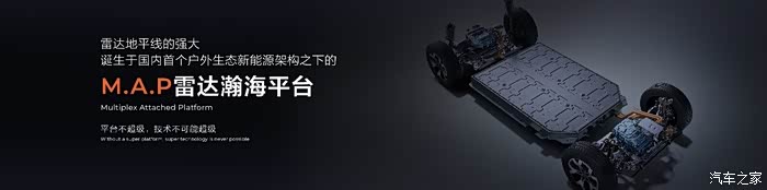 雷达地平线诞生于国内首个户外生态新能源架构之下的M.A.P雷达瀚海平台。与其他平台不同,M.A.P雷达瀚海平台融合顶流的皮卡技术和先进的新能源乘用车技术,让平台上诞生的每一款车,拥有能够全面超越传统皮卡平台的机械性能,和全面赶超先进新能源平台的电特性。该平台不止是产品平台、技术平台,还是多元户外生态平台,是雷达构建户外生态最重要的支点,也是超级与不超级的分界点。