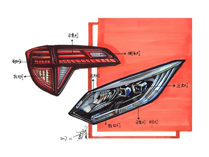 【外观】向后收窄的大灯与前进气格栅融为一体,让整个车头显得很宽大。雾灯造型和大灯相呼应。车侧线条有点溜背的感觉,再加上双腰线的设计,很有辨识度。类似飞镖状向下延伸的尾灯在晚上特别的有辨识度。
