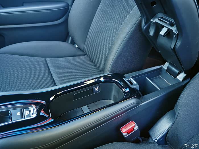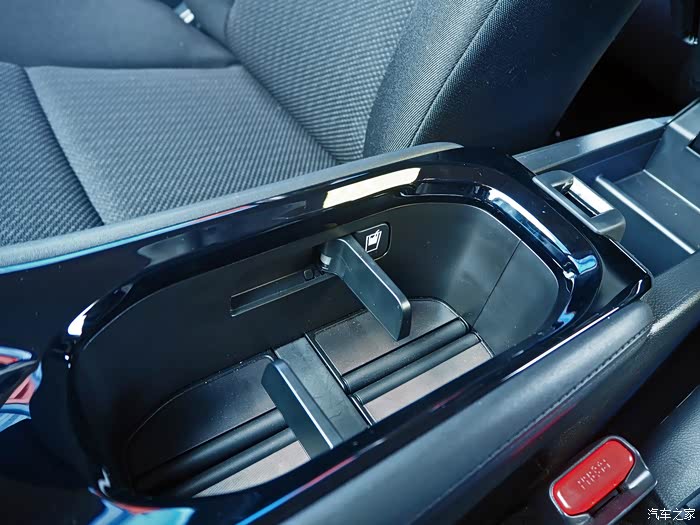 【前排储物空间】拱桥一样的中控储物区,不但抬高了档把便于操作,更在下边额外为前排增加了一个很实用的储物空间,后边这个小格子里放手机刚刚好。
