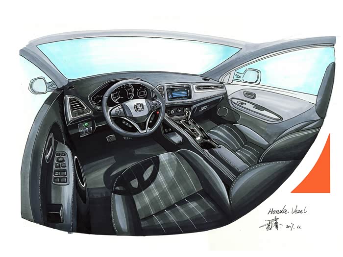 【内饰】相机很难拍出整个环抱式内饰的感觉,尤其是中控和门板的衔接。实车上,所有线条的走向,能让你坐进来就会有整个内饰在向驾驶员聚集的感觉。回来之后我画了这个内饰视角,有没有画出广角镜头的感觉。