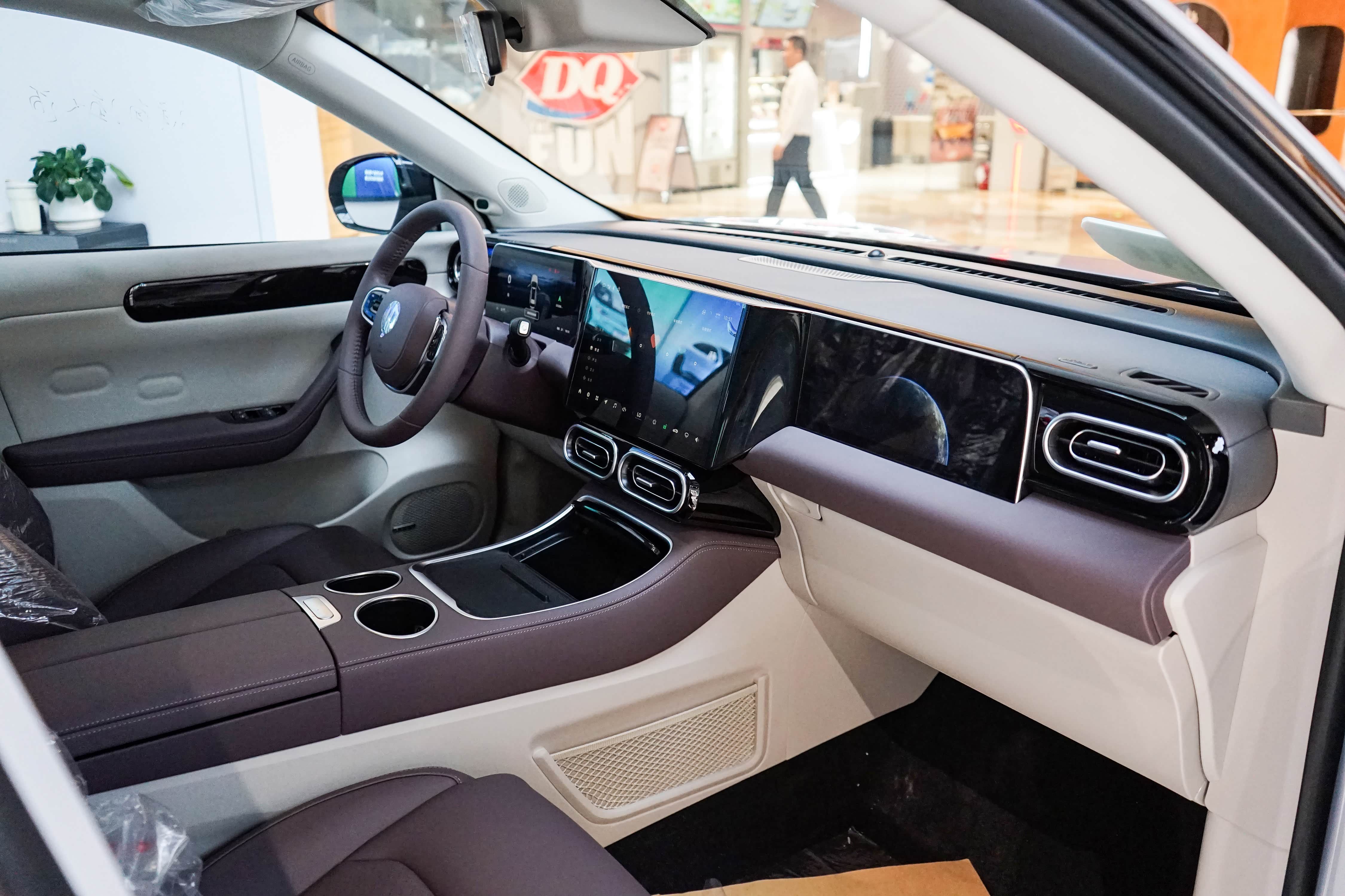 你能想象到这是十多万的一个内饰吗,当初我第一眼看到的时候确实被惊艳到了,车内的三块大屏幕还是非常有吸引力,两边分别为10.25英寸、新款增程版的中控屏幕升级到了14.6英寸,最新款车机也配备了8295芯片,使用起来更加顺畅