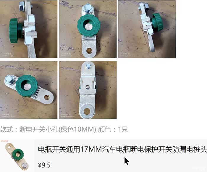 开关装在了车身和负极线之间。 开关自己带的M10孔大了,配的螺丝粗又短,线束孔穿不过去,找个细螺丝,各种折腾,最后总算装上了。。。