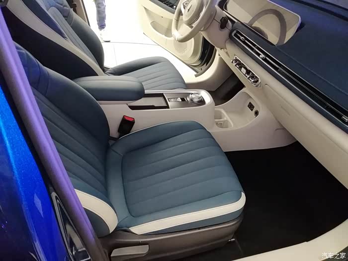 欧拉好猫的内饰清新精致,匹配了一块23英寸的连体式大屏,而且还有一些镀铬样式的复古造型按键,方向盘、车门内饰板、座椅等部位还使用了大量精致缝线工艺和菱形皮革纹路造型,而双色中控台和座椅更是与车身颜色相呼应,给人一种表里如一的既视感。