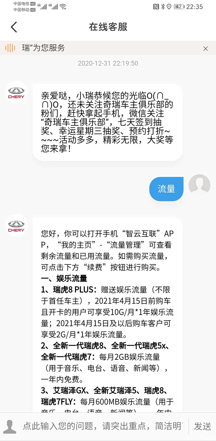 免费流量包括娱乐流量一年,基础流量5年。娱乐流量是在线听歌,导航用。基础流量是手机远程控制用。