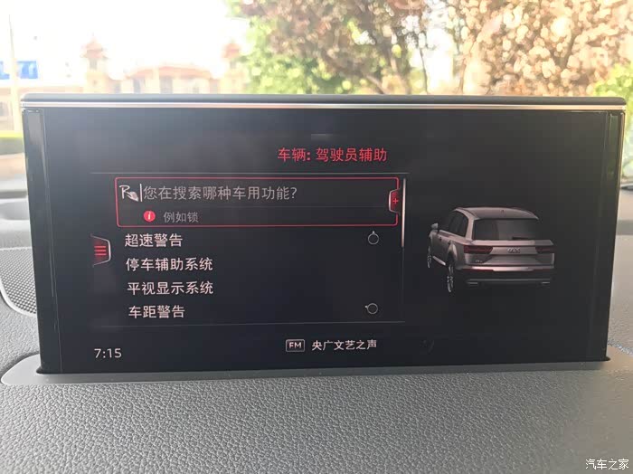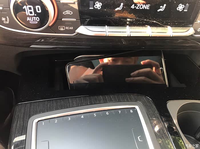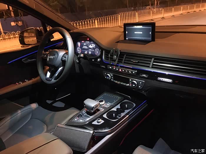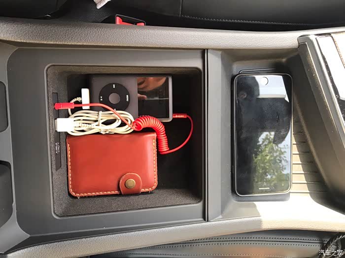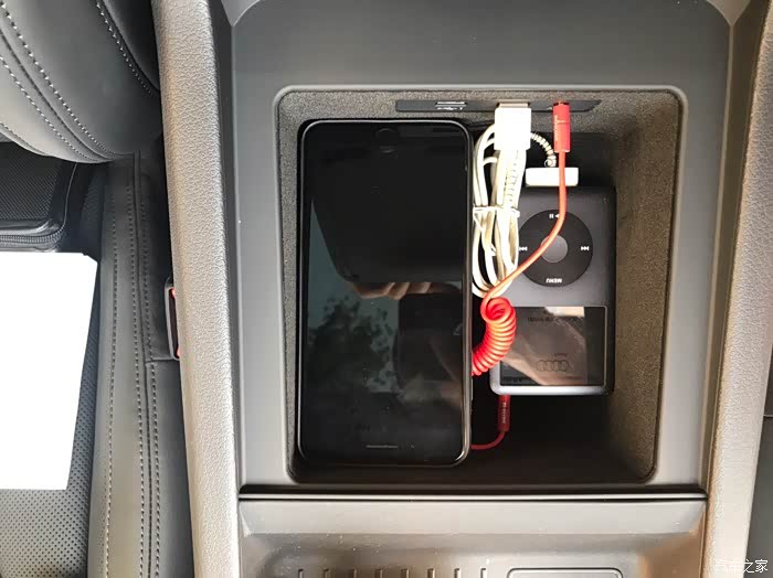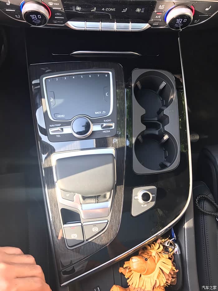 侧门板我比较喜欢,原来开A6所以对这个有熟悉感,但是增加了厚重感和反毛皮的高端感。中央扶手地带我觉得也可圈可点很人性化,我没有选Audi音乐接口所以没有car play,正好把原来的Ipod拿出来用。也是棒棒哒??。手扶空间不是很大,可以放一些平时需要的东西,拿着方便我给出了组合给没看着空间的朋友作为参考,另外人性化的地方是中央扶手到挡把到MMI操作的距离,你可以毫无压力感的把手搭到扶手上换挡,并且手腕在有支撑的情况一下完成输入指令。另外值得表扬的是搜索功能很强大。真的是方便很多!