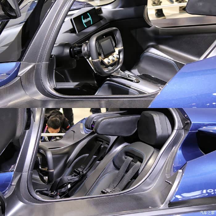 这内饰,简直开飞机啊,座椅采用了半躺的姿势,可以减小加速和刹车带给车手的压力。