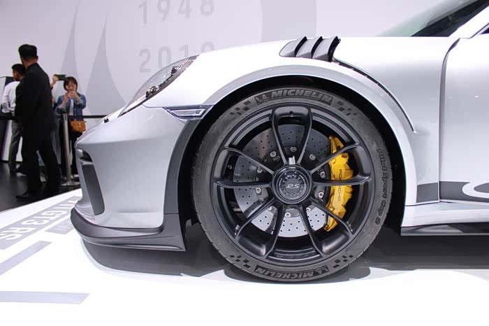 头灯与普通的911相比没什么区别,机盖上为了空气动力做了一些开口,车标改为帖子也是RS的传统之一。