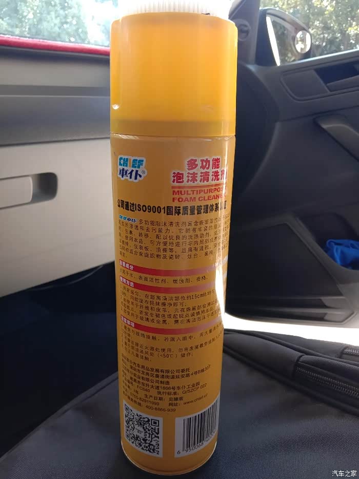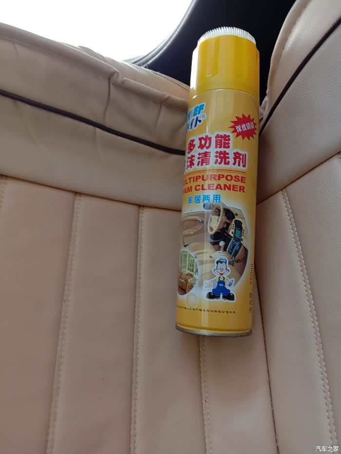 今天我给大家介绍这款车仆车家两用泡沫清洗剂,这款多功能的泡沫清洗剂拥有丰富的表面活性因子,因此,具有很强的去污能力,并且含有丰富的泡沫将污垢吸收,包裹,转移,配以优良的洗涤助剂,达到令你满意的洗涤效果,使用这款泡沫剂,可以方便的对车内皮革制品,表盘,车顶棚纤维制品等进行局部或者整体的清洁,另外,不用担心,会损坏部件和制品,这款清洁剂具有温和安全的特点,无需担心,使用方法是用前摇匀,要不然喷出来的不是泡沫,是水涧了,然后离清洗部位15公分左右喷,待个一两分钟,再用干毛巾擦拭,效果不错的。我的爱车就是这样操作的,非常干净,现在我的坐垫都很亮,干净,我每月都抽点时间会喷喷擦擦,来看看这款产品吧!