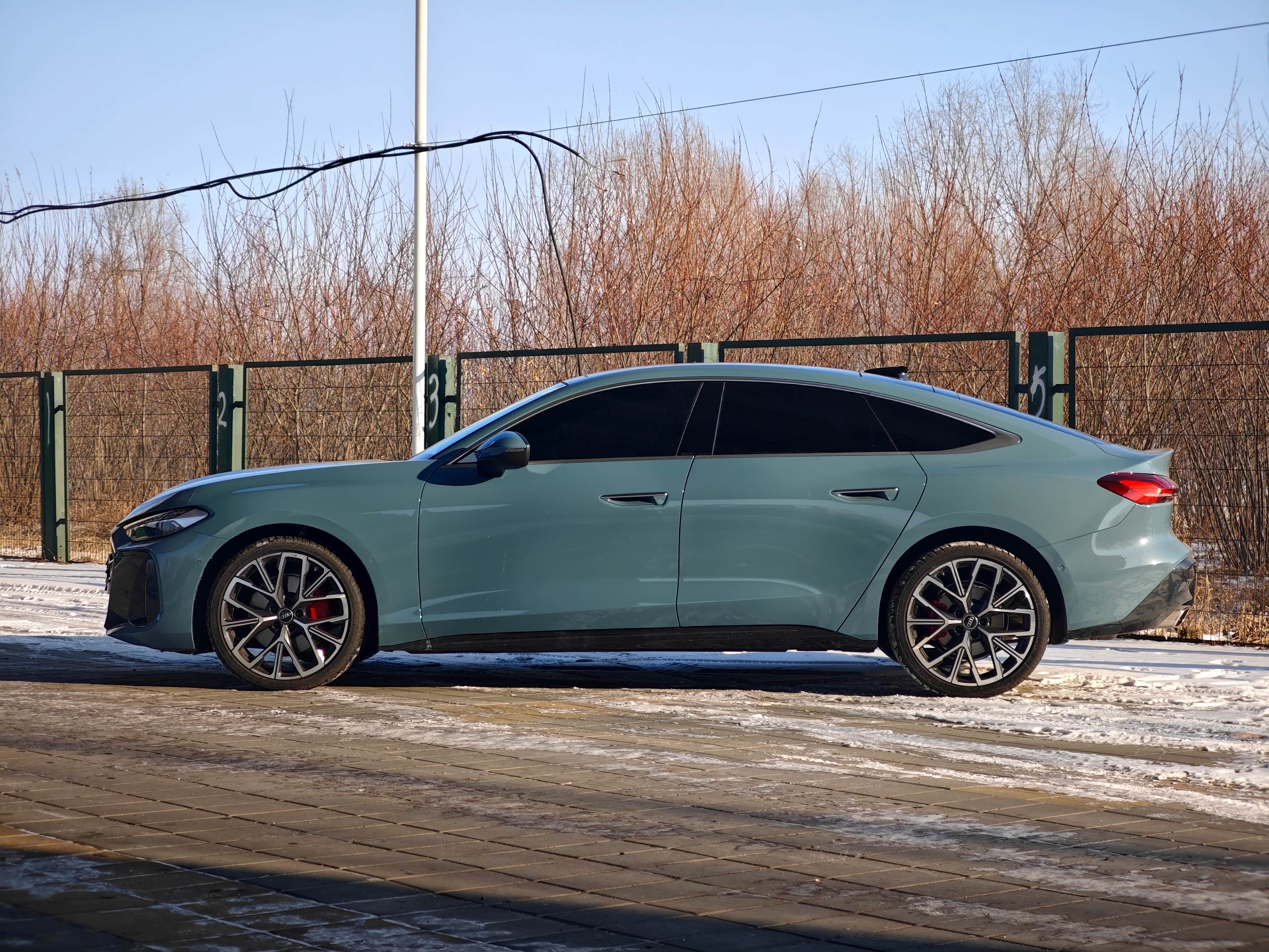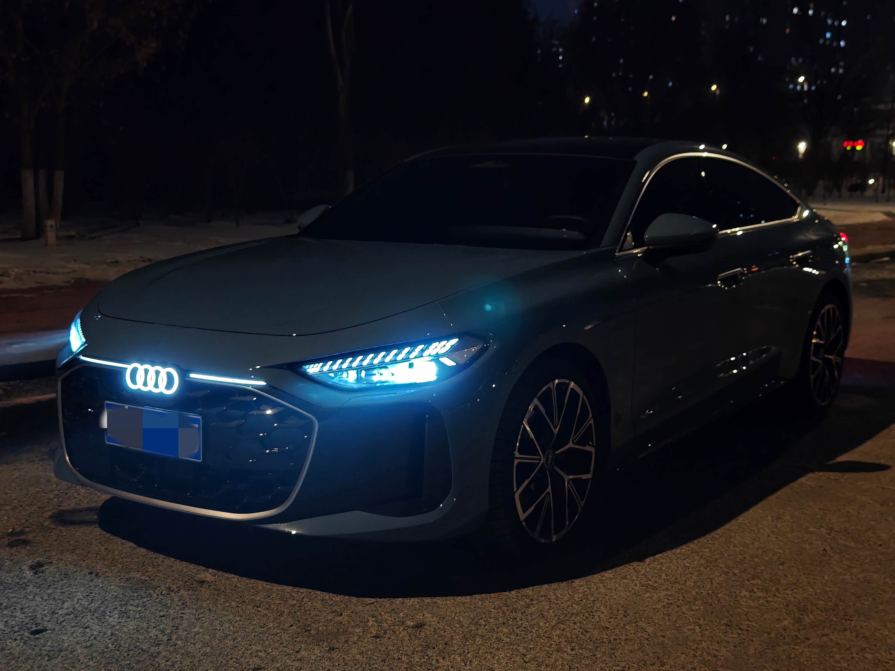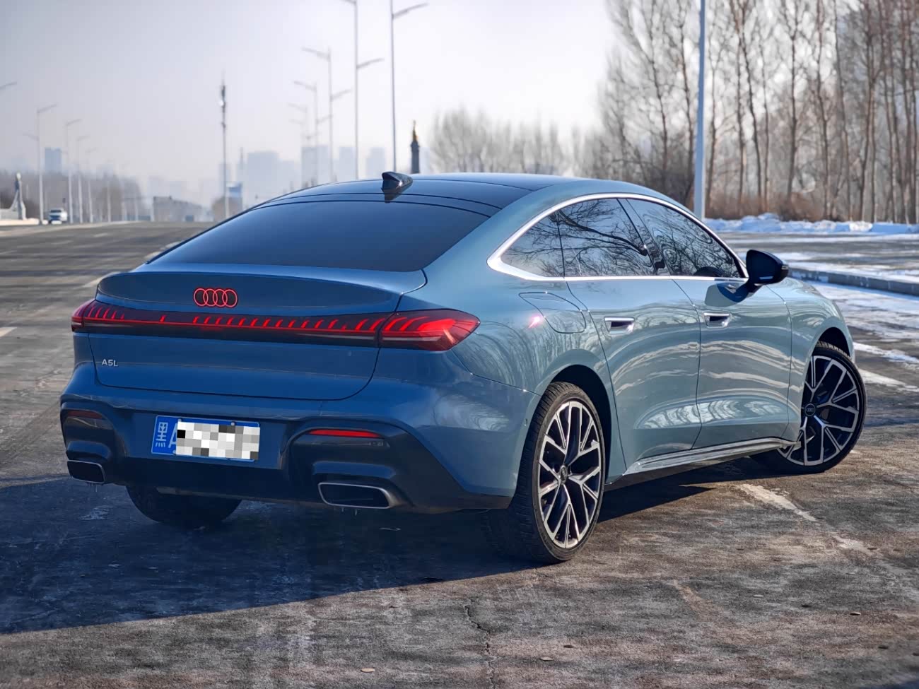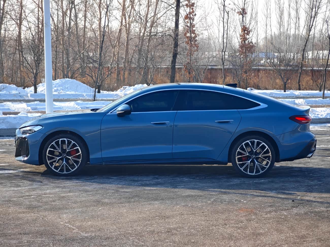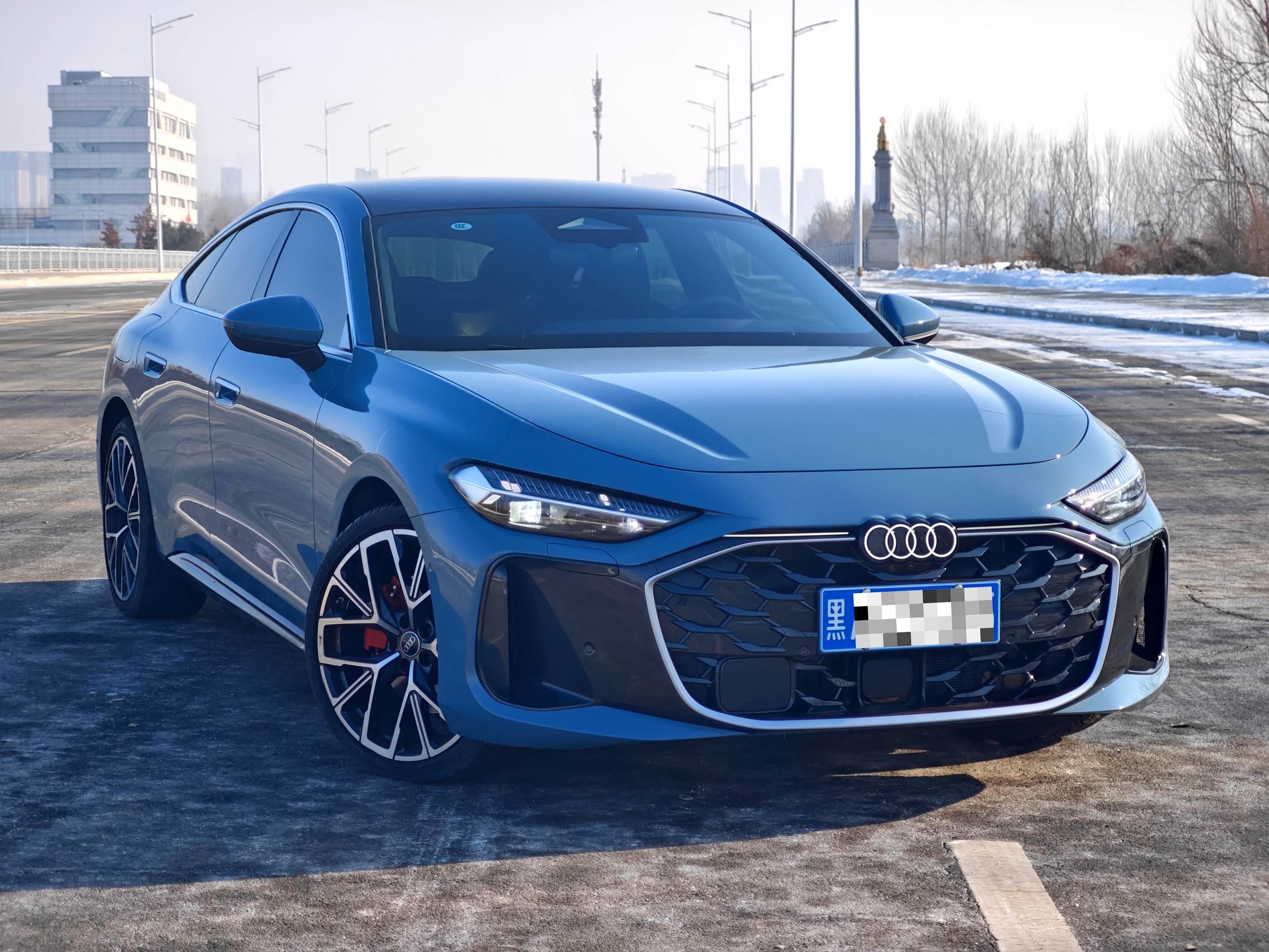上汽奥迪A5L Sportback 150kW豪华型,选装了智韵蓝车漆、20吋双5幅RS轮毂、前侧窗双层静音玻璃、后侧窗深色隐私玻璃。