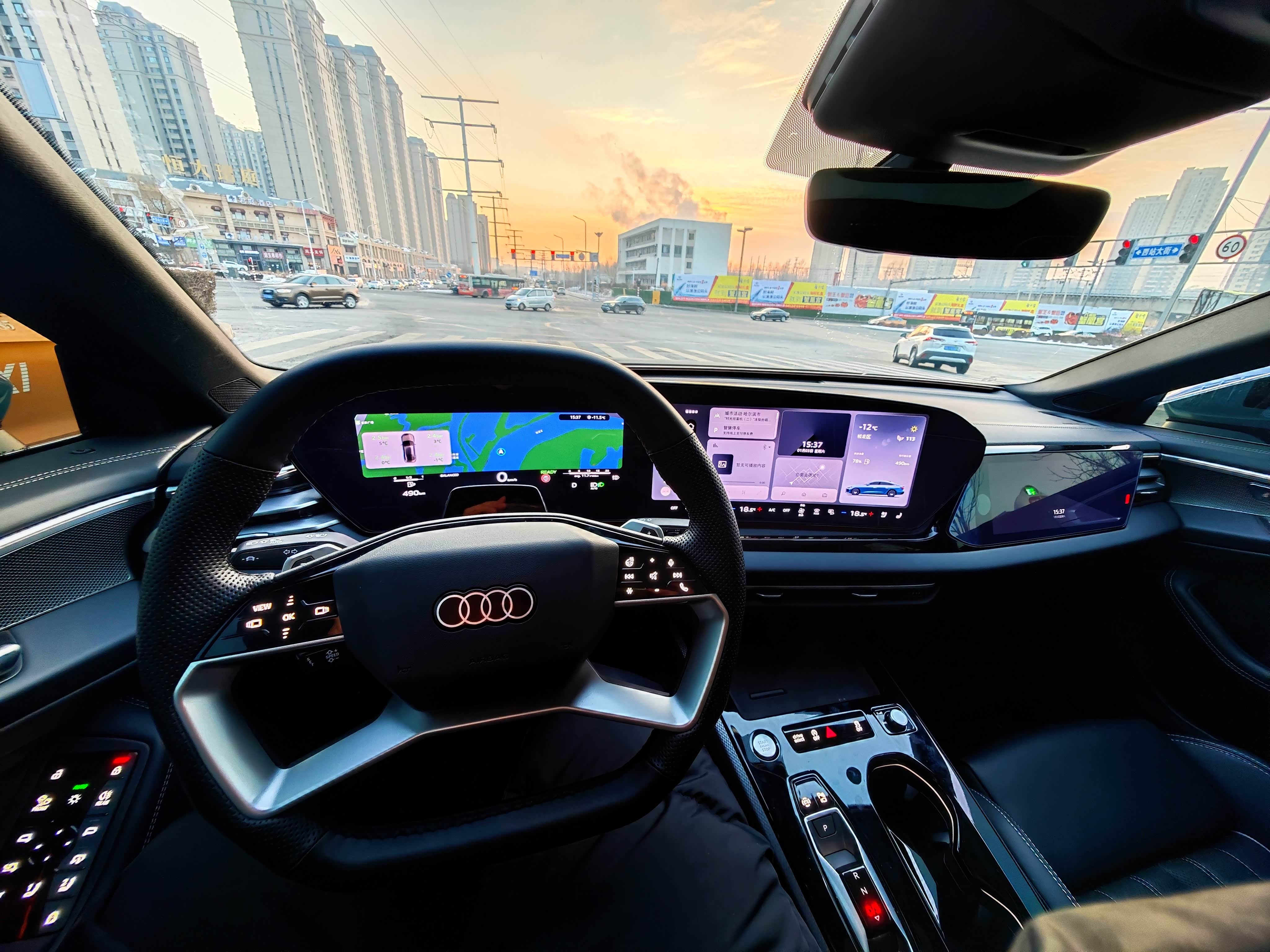 我看网上有人测A5L Sportback低功率版有弹射模式(我特地看了是150kW的低功率版)。运动模式,推到M档手动模式,车辆保持静止,左脚刹车,右脚油门,可实际上发动机转速最多到2000转,转速不能再往上提升了,发动机会自动断油,仪表盘上也没有像我看的视频里面显示有红色的动态条。不知道是低功率版本来就没有这个所谓的“弹射模式”,还是我没操作明白。在这种情况下,车地板油跑出去,动力确实够用,推背感很充足。我开的这台车选装了20吋轮毂,轮胎宽度来到了245,但哈尔滨冬天路面硬,摩擦力偏弱,加上雪地胎,起步时会打滑。