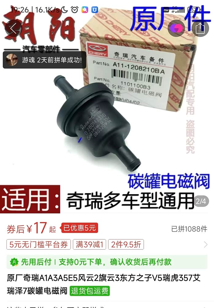我今天也换了,旧的电磁阀关闭不严,会吸燃油蒸汽。
