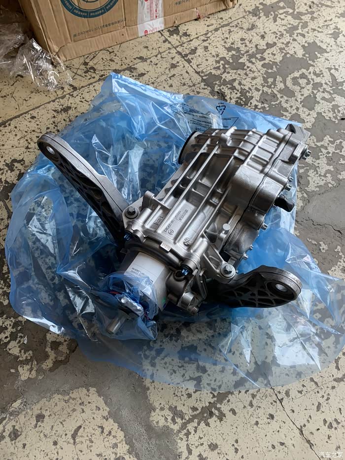 全新后差速总成。换之前有一样事情记得干,车抬起来把后差速上的插头断掉,再开车出去转一圈,这时候车是前驱状态,如果异响和震动都消失了,就可以确定是后差速故障,可以开始更换。