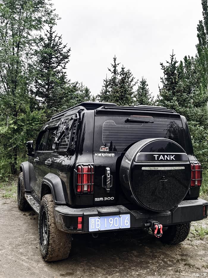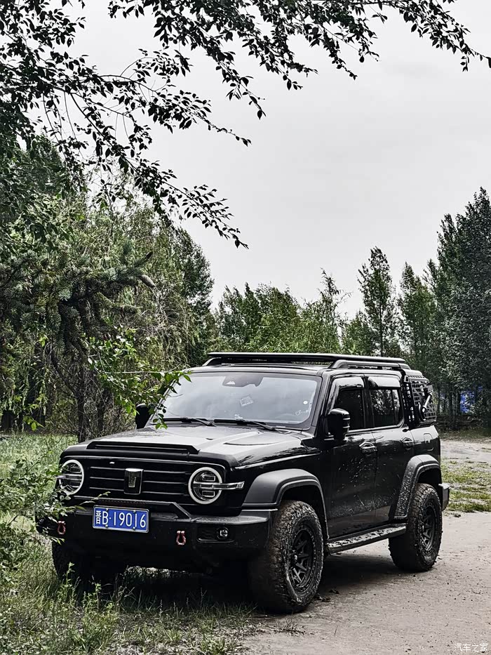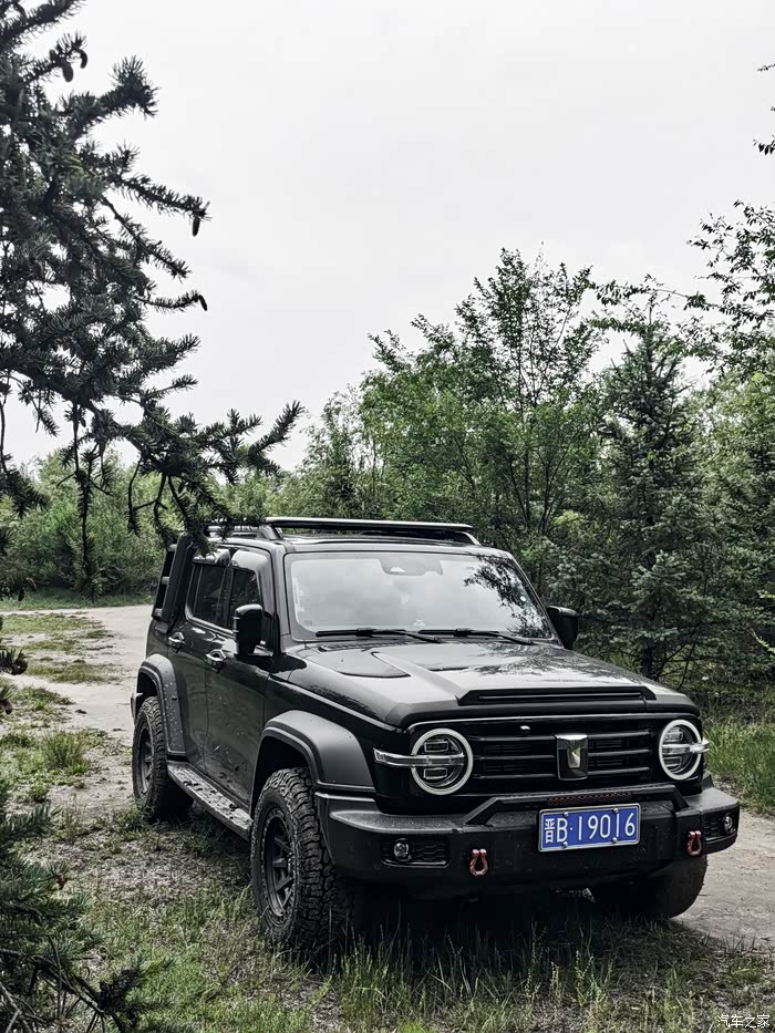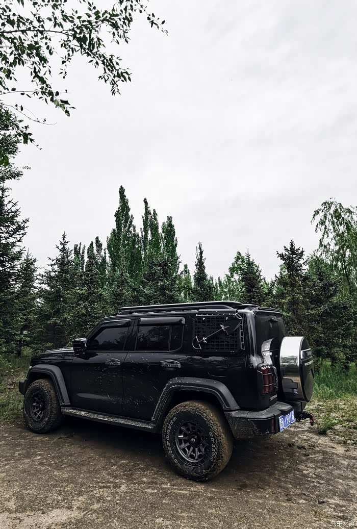 探险家行李架+爬梯+带灯备胎罩+机甲灯罩+机甲门把手+更换17寸轮毂+柯玛仕265/70/17AT胎+前牛栏前杠+烈马大灯+侧窗+前机盖沙石挡+后尾翼。
