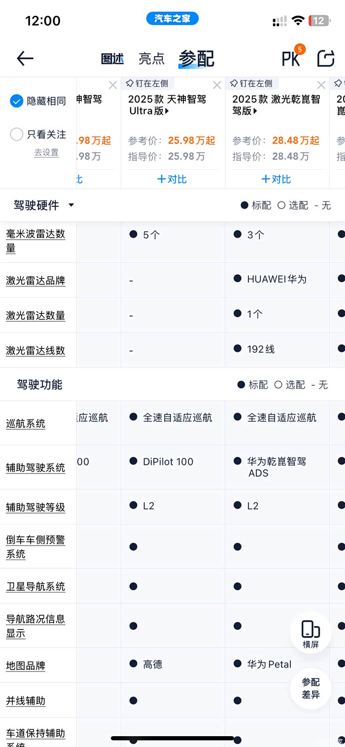 同时,我们可以看到搭载了激光雷达的华为智能辅助驾驶版本的价格,普遍要比天神眼的版本价格贵到¥30,000以上,如果是选城区辅助驾驶功能还需要加钱,所以对于预算有限的车主,选择天神之眼版本确实也是一种不错的选择。