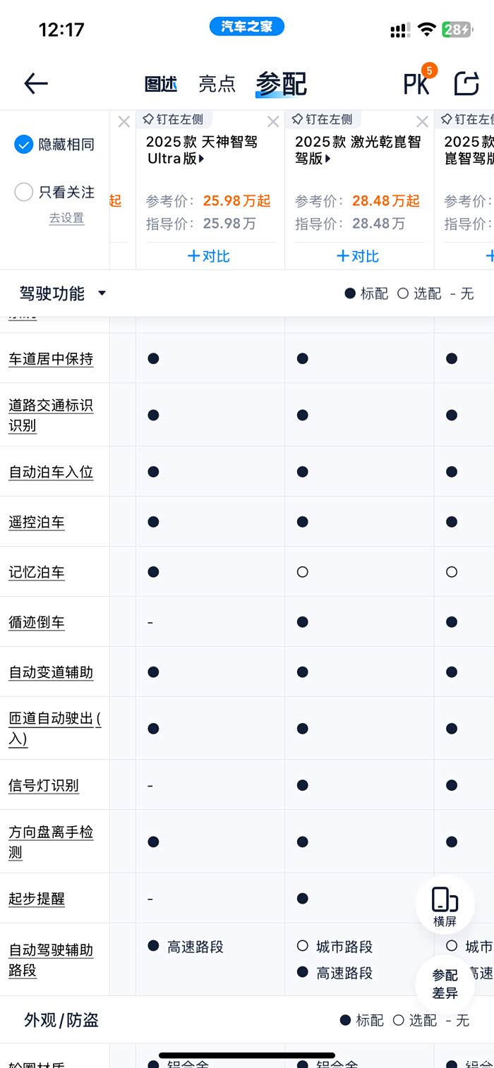 我们可以看到这一次的方程豹5主要带来了两款比较大的配置,那就是比亚迪自己研发的天神之眼版本智能驾驶,还有一个是华为的智能辅助驾驶,这两个版本最大的区别还是在于激光雷达的搭载方面,华为的智能辅助驾驶是搭载激光雷达的,它可以实现城区的辅助驾驶,但是需要选配。他的优势是可以做到全程的零接管,同时具备道路识别信号灯的能力等等,所以他对于程序的驾驶是非常重要的,而且以后的趋势也是端到端的,说到这里你是否对城区的智能辅助驾驶有非常大的需求,而且对未来的趋势非常看好,那么你一定要选择华为的这个版本