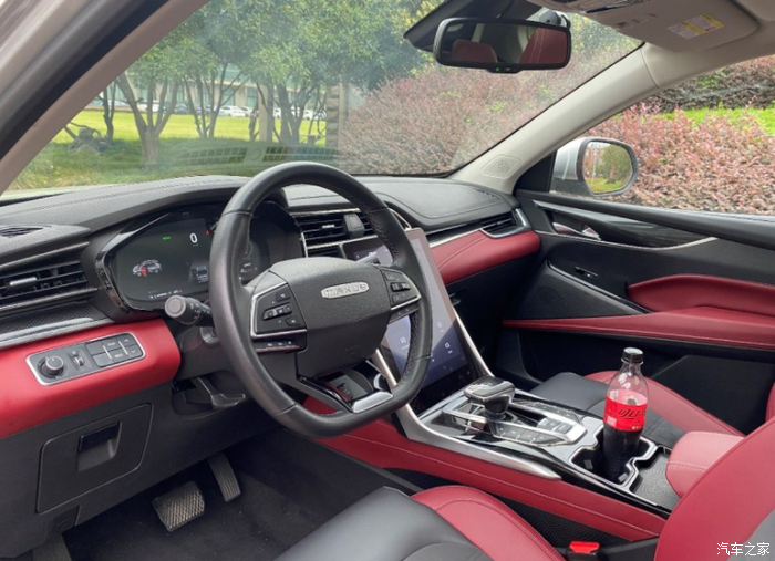 先聊聊外观和内饰吧。外观肯定是很耐看的,看多久都不会腻的那种。内饰方面用料很实在,很多地方都用的皮质包裹。而且红黑的内饰配色,非常契合现在流行的运动风。