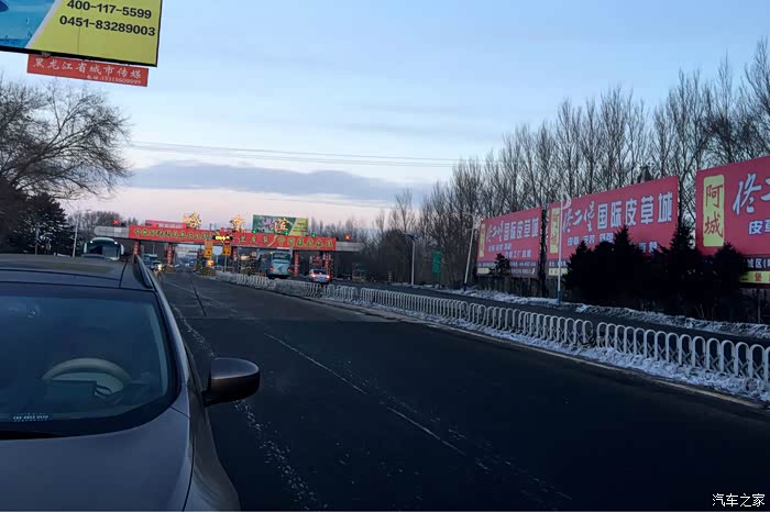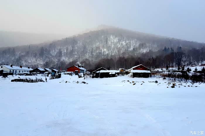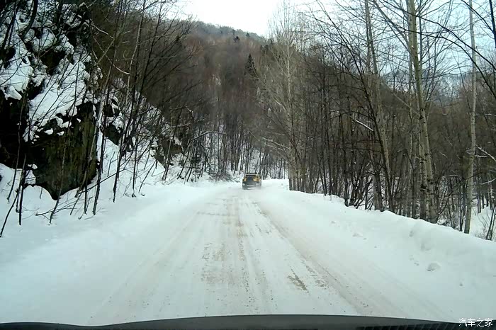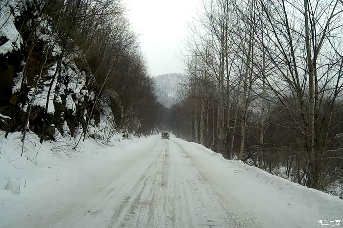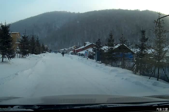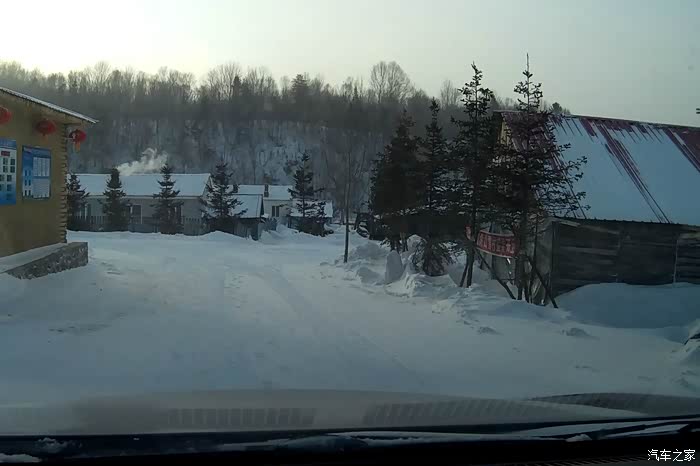 雪村,距离牡丹江大约110公里,接近雪村的路上出现冰雪路面,必须小心驾驶