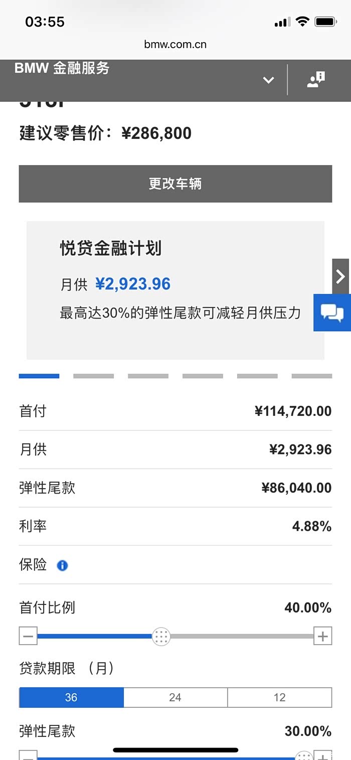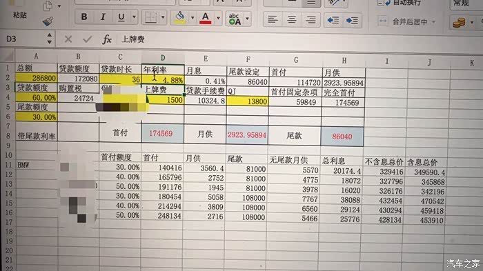 宝马金融用的是等额本息还款方式,我自己参考等额本息公式,做了一个能带弹性尾款的。计算验证的值与宝马官网一致。