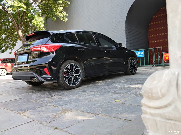 新车整体看上去大气时尚,全新的前脸设计在加了ST-Line运动套件后更加有个性,大尺寸的蜂窝状格栅设计非常的运动,前大灯造型非常的上档次,主光源与日行灯相结合在一起,在点亮以后有非常高的视觉识别度,还有充满想象的雾灯造型,出厂自带犀利前唇,加上车头引擎盖上隆起的四条肌肉线,性能小钢炮的造型一下子就出来了。同时,两厢车在造型上明显感觉更讨喜,像旅行车般灵动,加之朋克黑的深邃,给人不怒自威的感觉,侧面顺畅的线条,小溜背式的尾翼设计,更有红色卡钳点缀的米其林PS4运动胎,妥妥滴彰显出了福特家族独具韵味的运动气息。一个字帅,两个字帅炸,三个字超级帅!一颗中年男人骚动的心被彻底的征服!