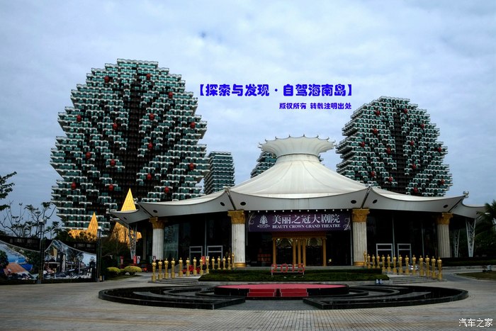 美丽之冠大剧院。这几棵大树可能去过三亚的人都见过,但是下面的大剧院去过的人应该不多,走近看看,你就会知道所谓的七星酒店有多么的华而不实了。