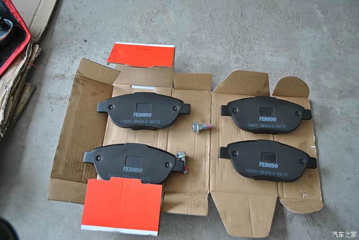4片前刹车片还带2颗替换螺丝,但2颗替换螺丝没用上,原车的是13mm螺丝送的是12mm的。
