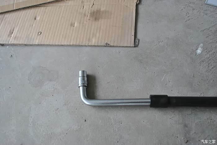 这要是在路上轮胎跑了气,没点工具你不要想自己把备胎换上。还好,一根不行再加上一根。立马轻轻松松拧动了,不要全松开。