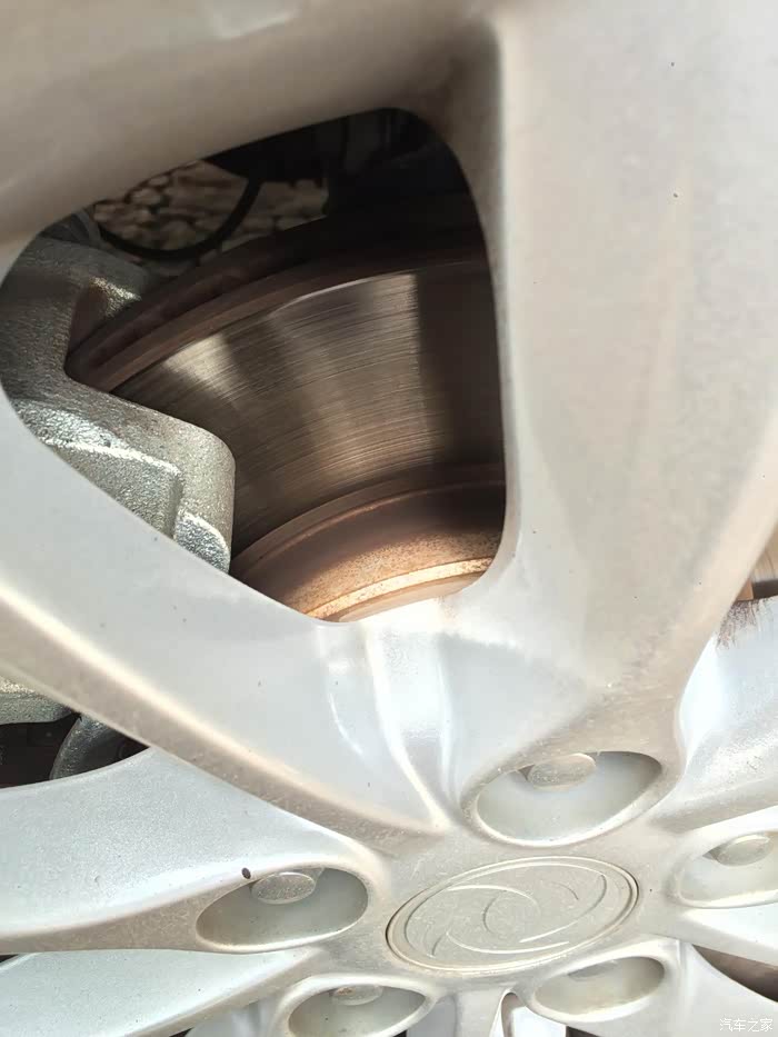 从车库开出来的时候,总觉得刹车好像在响,出门检查了一下,原来是停了太久地下室,加上成都空气过于潮湿,刹车盘生锈了,这种锈无伤大雅,检查一下搞清楚就好了,以后多开开就又会恢复以前亮晶晶的样子了