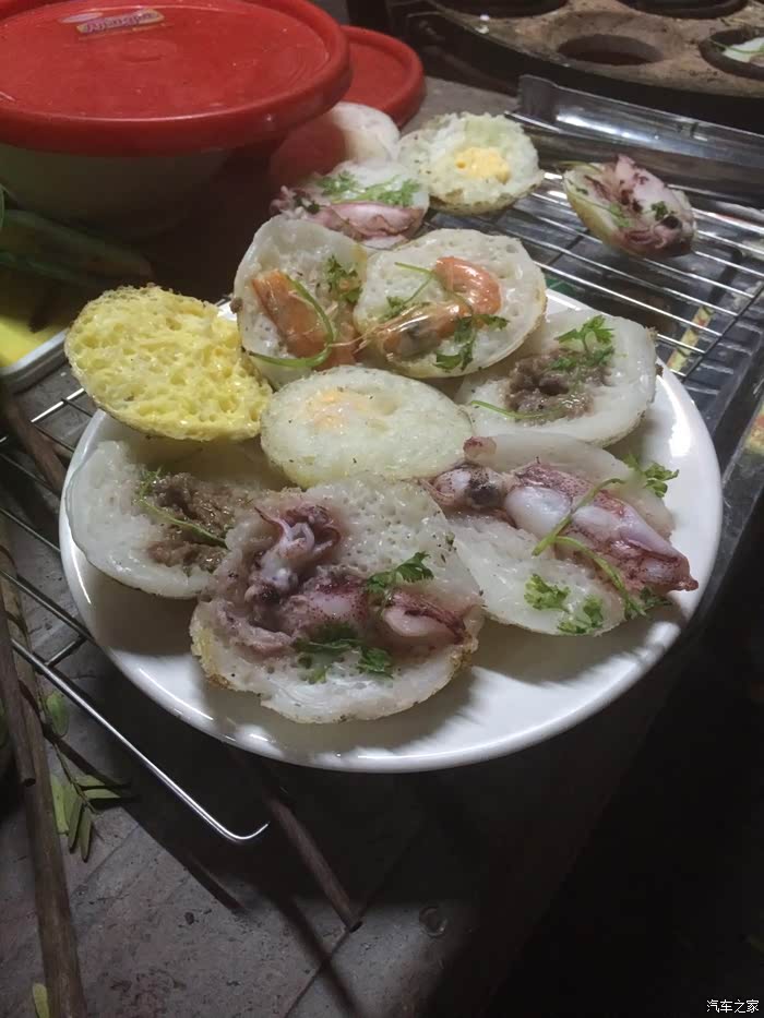 晚餐又去吃了那家超好吃的烤海鲜吃了晚饭逛小巷子,看见了越南的路边小吃,于是尝试了一下,真的很好吃,可惜第二天白天去的时候她没有出摊,只有晚上才出摊