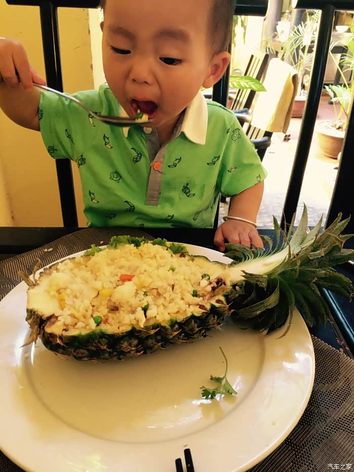 小朋友醒了,就在隔壁点了个海鲜菠萝炒饭给他,没想到味道很不错,一口气吃了好多