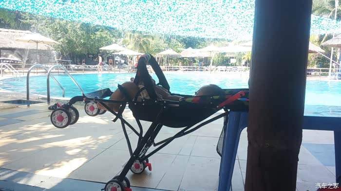 从公共海滩步行回酒店,大概两公里,还好带了婴儿车,小朋友走路就是摆摆样子,全程都求抱