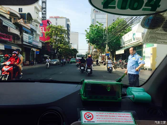 出租车上拍了张照片,可以看到,这边很多的摩托车,这里人民的出行方式都是摩托车为主,这边汽车的税是很重的,能买车的在越南本地都是极富极贵的人,在这里能看到的大部分都是日本车,当然还有有钱人青睐的奔驰,但是神车VW在这里一辆都没有见到。另外,司机开车都很悠闲,一直保持40公里每小时的速度,我对LD说,我们要是开车过来多半会被一路的人鄙视。