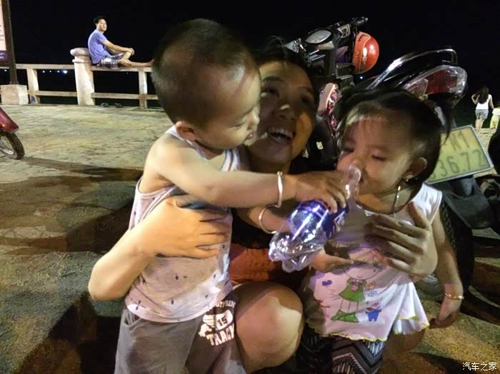 吃了饭在海滩散步,遇见个越南本地美女带着她女儿