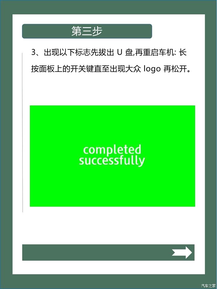 1. 当出现“completed successfully”标志时,先拔出U盘,再重启车机。