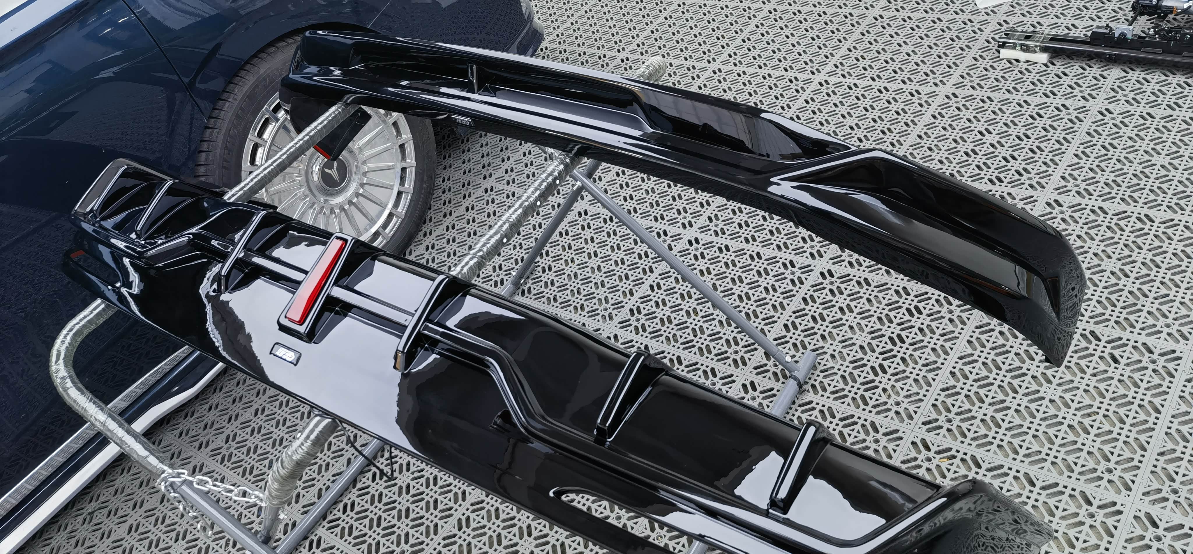 购车后一直在关注那里有渠道可以对HT进行外装改装,抖音、小红书、淘宝都搜索过,因昊铂HT保有量原因,直到三月在车友群看一则关于昊铂HT包围开发的信息,扫码果断入群提出自己的需求,4月供应商开发出样本并收集车友们意见,6月初确认包围终版与安装方案,包围共有三部分组成:前杠下唇、侧裙、后杠下唇含领航灯,配色有两种:双拼色、随车同色。