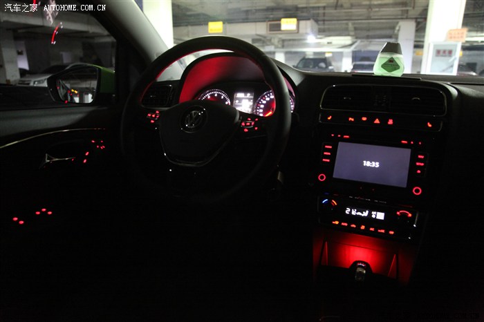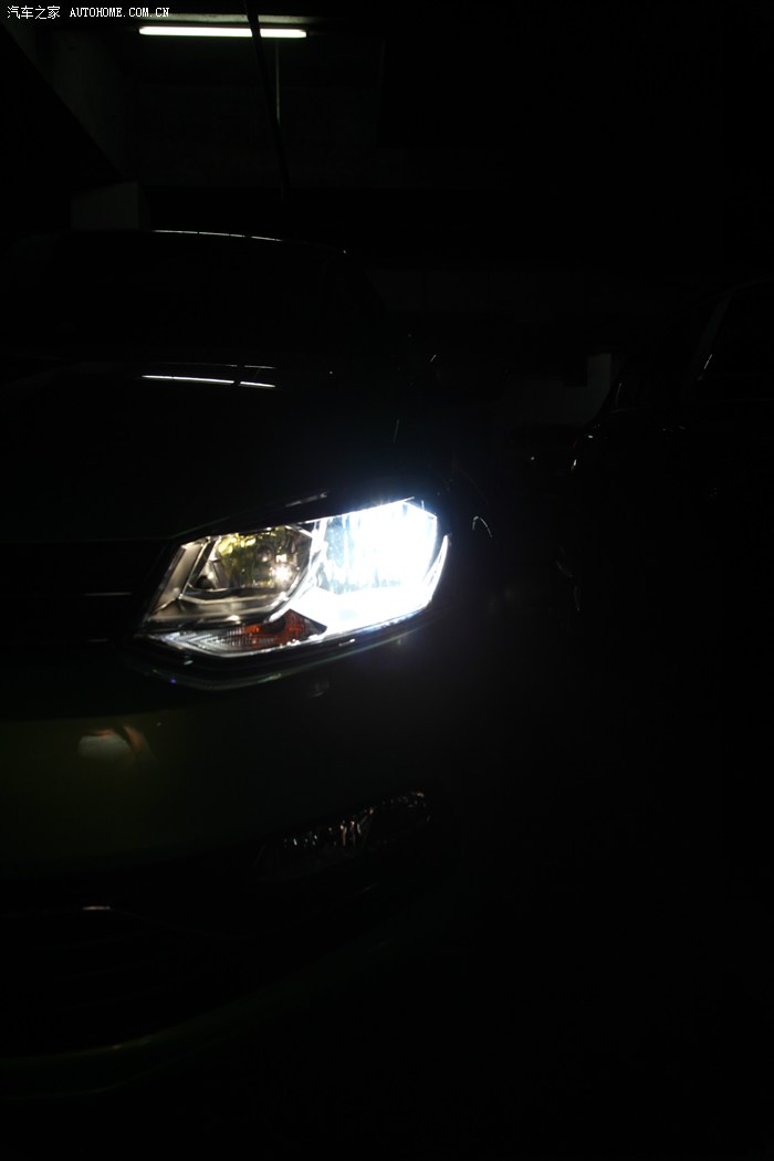 车库灯光较暗为拍摄灯光及内饰夜景提供了很好的条件