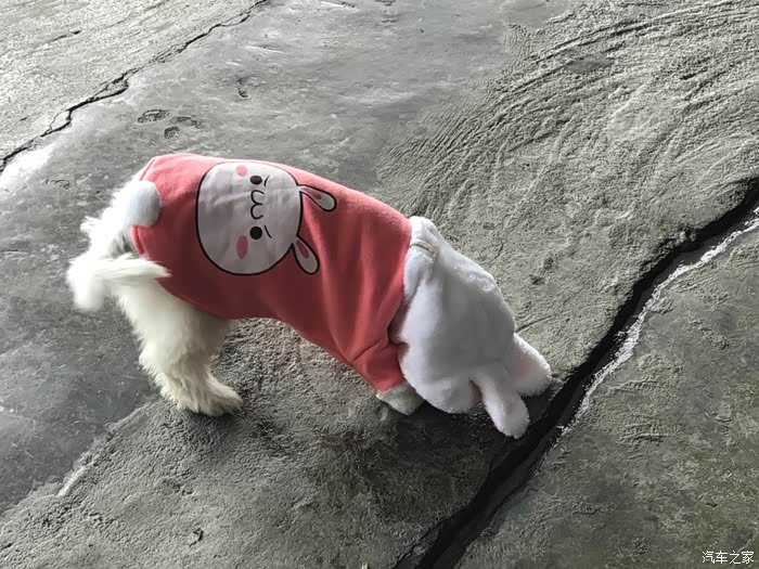 可是今天广州的气温,穿短袖都问题不大啊,难为了这狗狗。