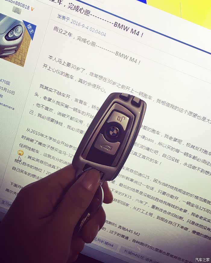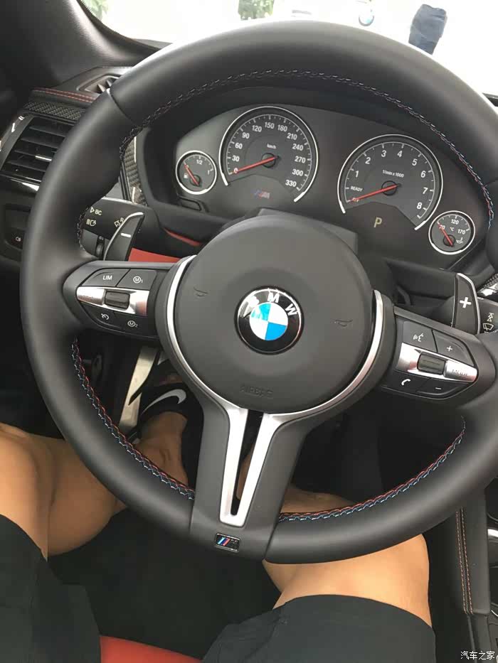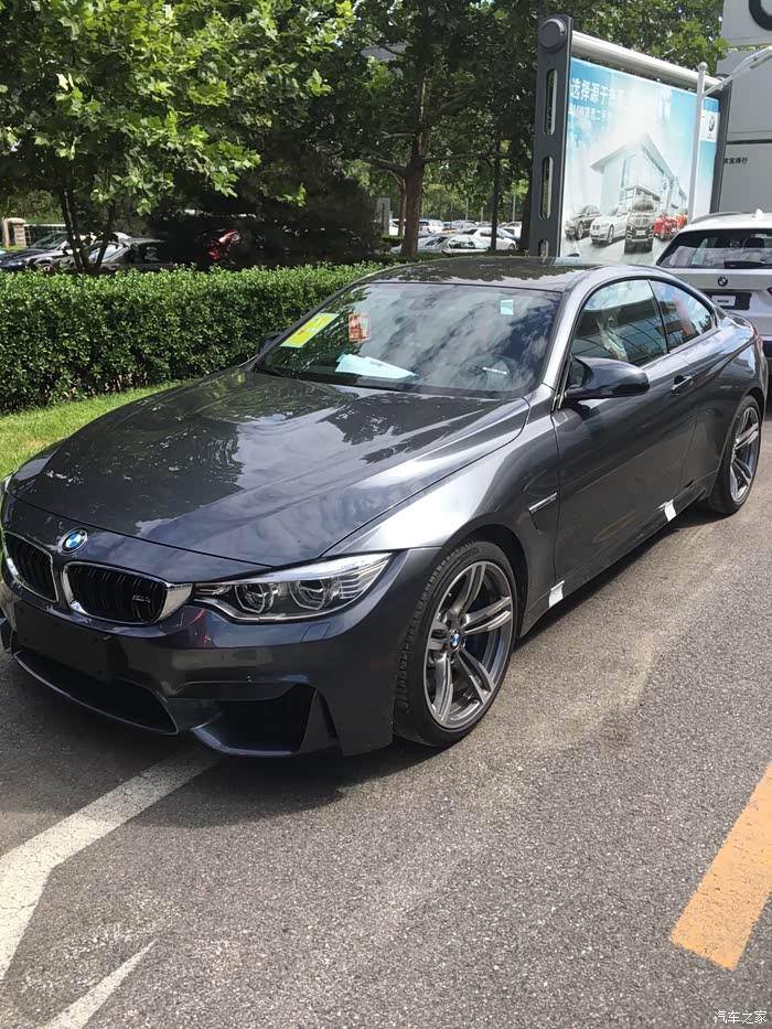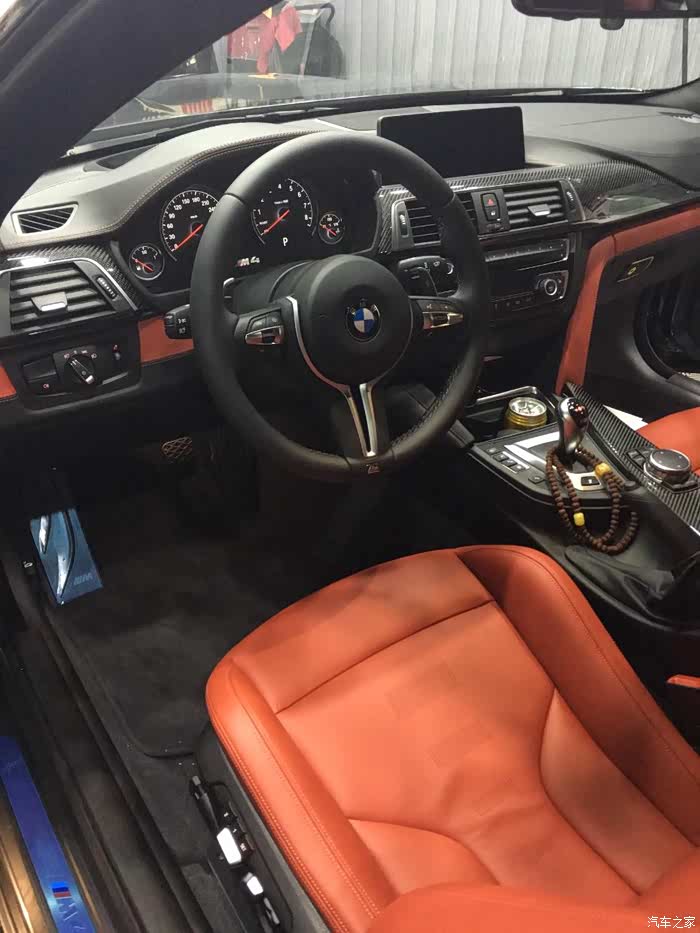 在我要确定买A45的时候,我身边的哥们就问我,已经花了50多了,为什么不提升一个档次?为什么不去看看C63和M3,M4?我第一映像是,我擦,那不得100多万?我连想都没想。我哥们告诉我,现在优惠很大的,我一想也是,大不了就贷款,累就累点吧,最起码一步到位了!!!我就开始各种混迹汽车之家的M论坛,混了大概半个月后瞬间在M3和M4之间做出了选择,直接M4双门的(颜色必须矿石灰配橙内!我最爱灰色)因为四门的日常用车我本来就有,加上M4的纯跑车造型就是一直以来我最喜欢的样子。立马开始全国各地的打听价格,C63直接pass,不是因为C63不好,只是因为我更爱BMW。经过一段时间的寻找,我认识了北京宝泽行的M销售专员-王迪(谁想去北京宝泽行买M系列的车,一定要找他,那哥们人真不错,反正我很喜欢!),他跟我说他们店里正好有台现车,是别的客户退订的,裸配的,价格也很好,二话不说交定金!然后,我定票了,然后,我就去了。