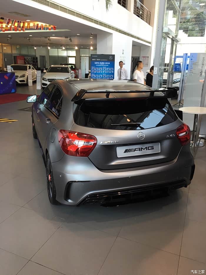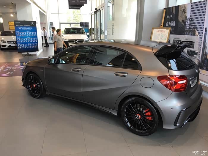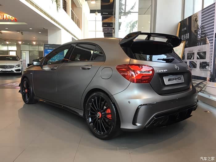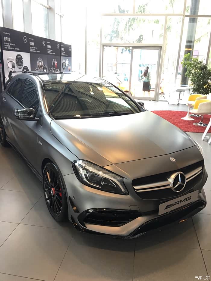 奔驰A45:其实差一点就要买他了,也看了很久,在ins上也关注了很多,说实话钢炮里面最无敌的存在,不管是外观还是性能都是没的说,也去店里看了车,很帅,哑光灰带套版,下面有图片。