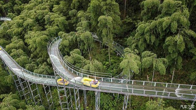 因为营地构造,首先是要进行“云霄飞渡”,从山顶乘坐充气艇沿着玻璃栈道速滑,高低差120m,想想都刺激。玻璃滑道,在森林竹海之上总长达2公里,坐车到几近山顶的位置,再徒步数十分钟台阶到达起漂点,做好从头部到身体的全面安全防护,坐在皮划艇里,伴着号令出发,如过山车般穿梭其间,水花四溅,俯冲漂移,720°连环大回转,速度与激情,无与伦比的身心释放,这样的身心体验不愧为云霄飞度,其实人在竹海中穿梭,称为竹海飞渡感觉更加贴切。