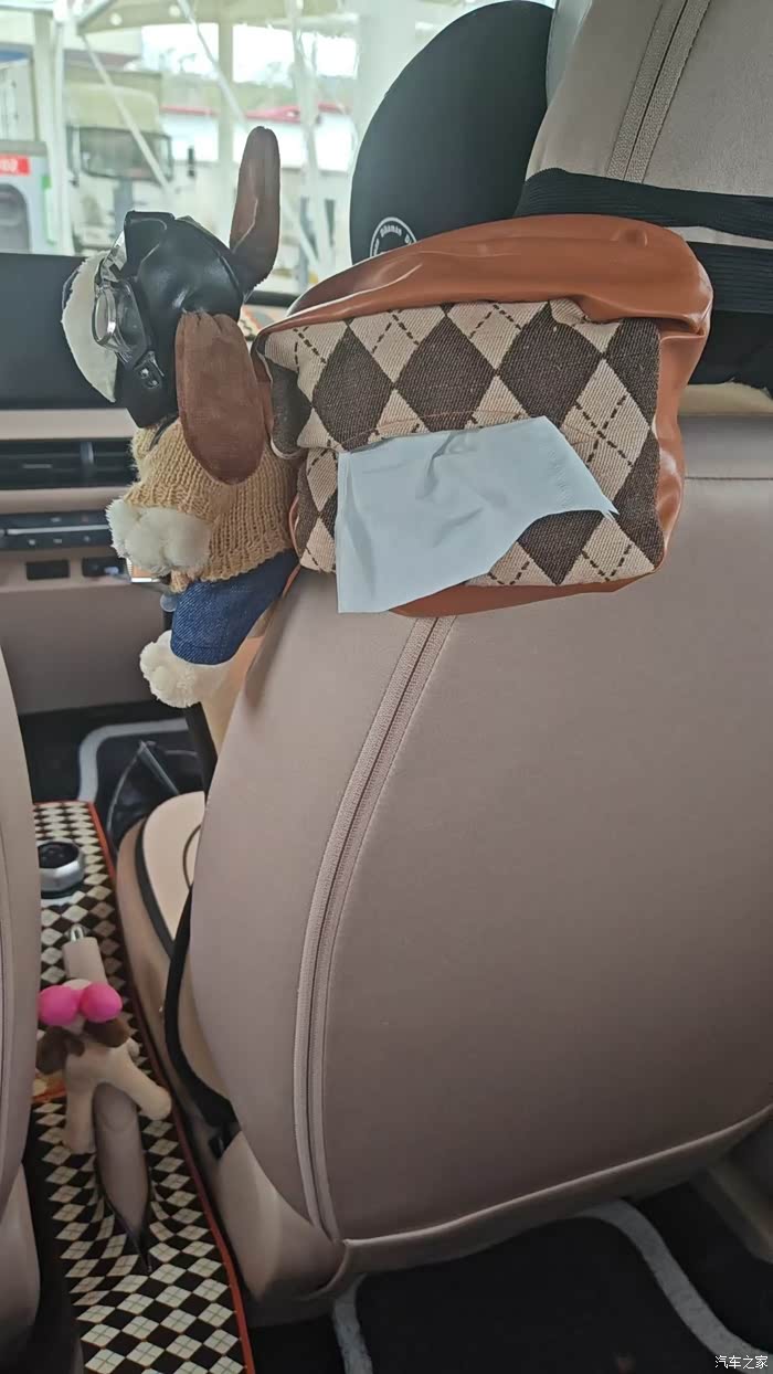 内饰上前面大台买了些车型专用储物盒,座椅上装了一个纸巾抽纸,还有全车的脚垫和坐垫,当然,其中肯定也少不了一些女性喜欢的装饰性物件,车内也还是挺花里胡哨的