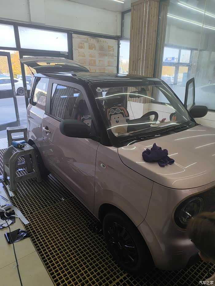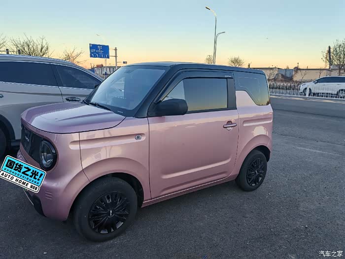 刚提回来的时候原车全素,颜值确实没有白色的耐看,但好在内饰座椅是皮质的,就这一点直接比其他颜色的稍显好了些,加上白色的没有现车,所以直接选了粉色。裸车价格不到四万块钱,上牌三百,加上保险大概四万四左右,送了个脚垫和贴膜,毕竟车价在这摆着,自认为已经挺合适了。