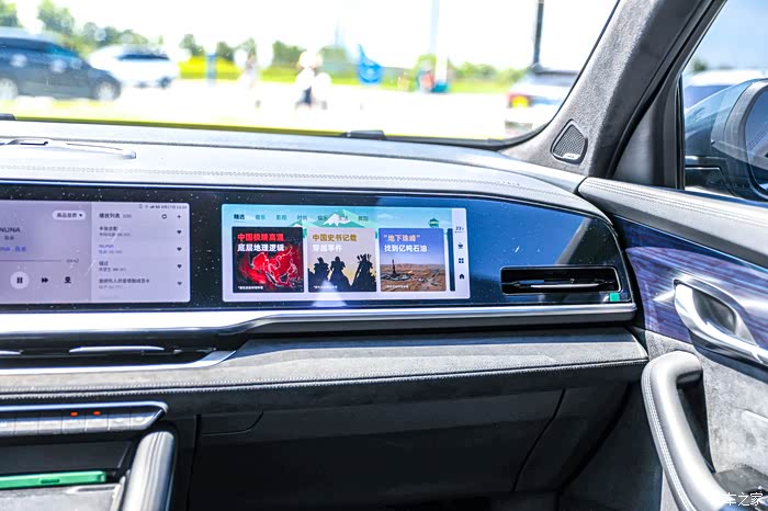 内饰也是雷神的一大亮点,三块12.3英寸的触摸大屏可以实现互联