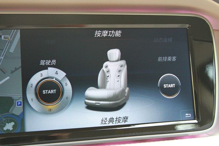 像德国是最好的了,S350都可以选按摩座椅,在中国,S63以上才可以选装前排按摩座椅,S500都不行,只能选后排按摩座椅且只能用在四座车,对于自己开车而且喜欢享受的人来说,不是个好消息。