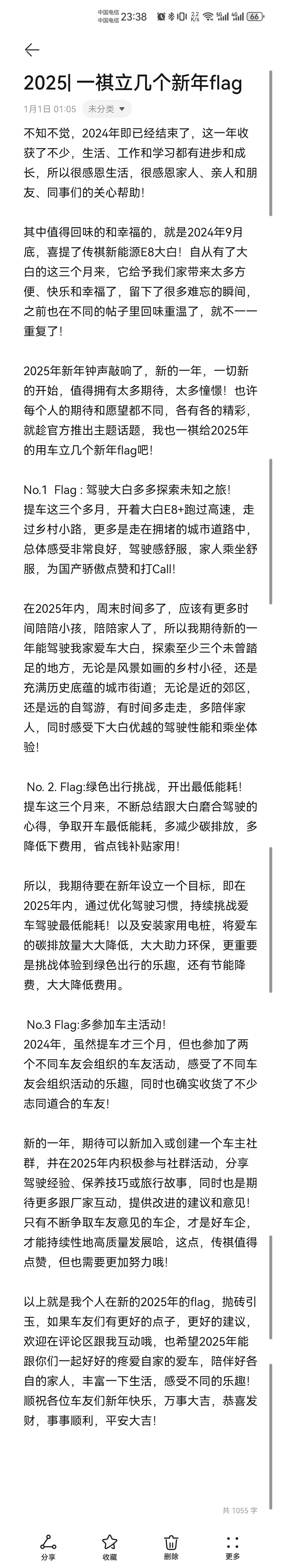 车友们好,2026年新的一天,坐在我的传祺E8+大白车里,看着里程表冲破2万公里,提车16个月的点点滴滴瞬间涌上心头。翻出年初立下的三个Flag,现在回头看,必须给自己和大白点个大大的赞!
