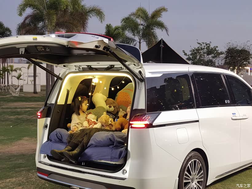 最难忘的是暑假单程600多公里的远行,带着老人孩子本有些忐忑,结果大白直接给出满分体验。2930mm轴距带来超大空间,五口人乘坐毫不拥挤,第二排独立座椅可调节角度,爸妈半躺着看风景直呼比高铁舒服。后备箱塞进两个28寸行李箱、露营装备和玩具箱仍有余裕,堪称移动储物间。