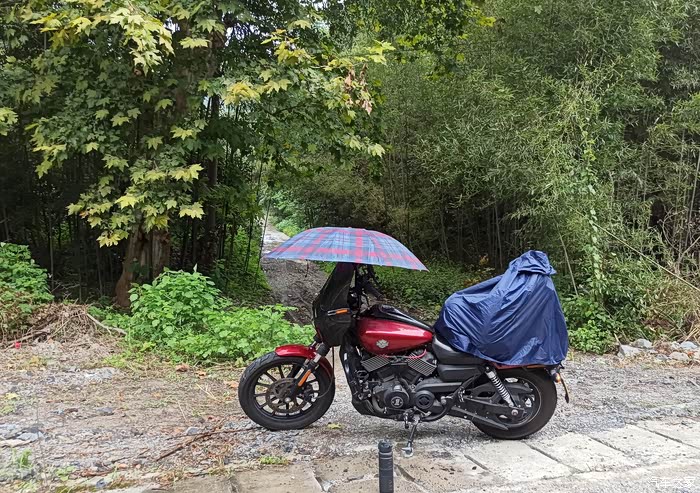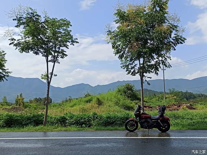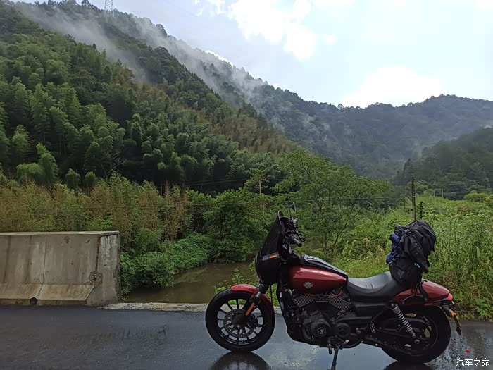 行驶到距离黄山不到80km的G330国道某段,忽然下起雨来。只能停车避雨,观天象,晴天漏,应该下不长。于是决定避雨,休息一会,不穿雨衣,继续赶路。