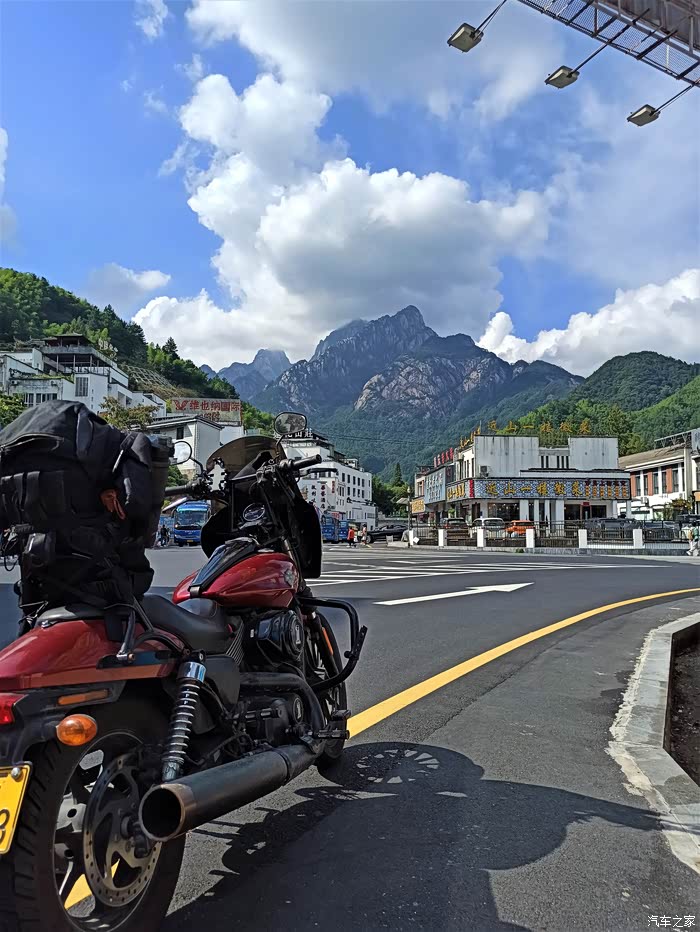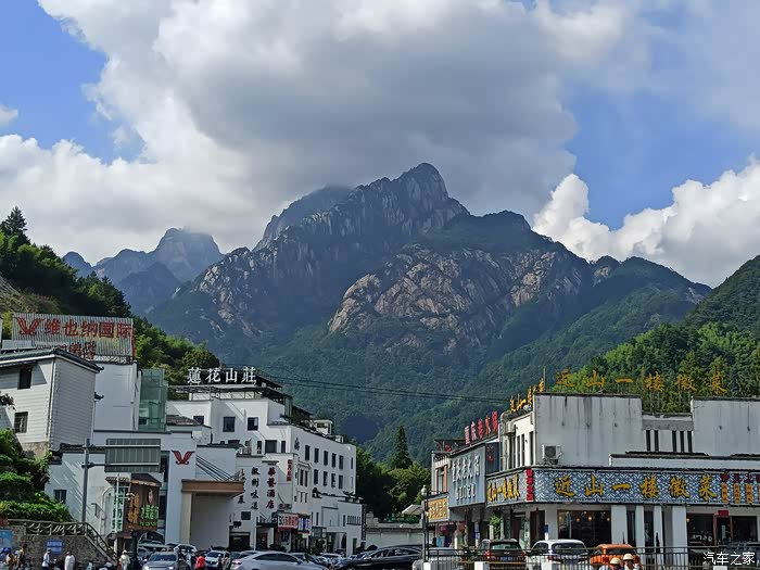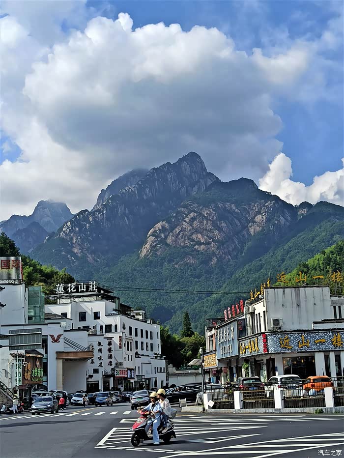我到的是南大门,沿途很多来旅游的私家车,大巴。当一个转弯突然一座巍峨的大山从天而降,那种震撼还是非常直接的。我以前其实也来过黄山,但骑摩托是第一次,我也不知道这个叫什么山什么峰,但是迎头骑过去,真实感受就是两个字,壮丽!