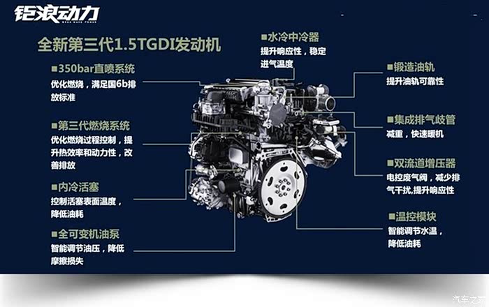 这款1.5T涡轮增压直喷发动机是矩浪动力的第三代,