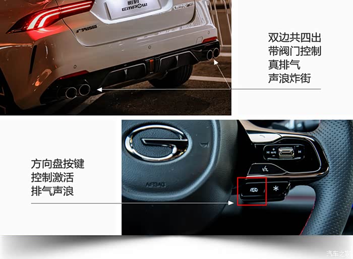 即排气系统具有两种不同的声音传播路径,可根据需求选择是否激活排气声浪功能。