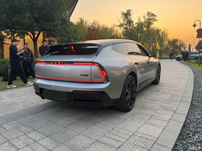 最直观的外观,未来感和瓦罐的优雅感搭得刚刚好!贯穿前脸的黑色饰带,把环形灯组和传感器都藏得很隐蔽,点亮的时候光影效果特别出彩,比传统四环标多了点科技感。最合我心意的是Sportback溜背线条,从车顶顺顺利利滑到车尾,既有瓦罐的舒展劲儿,又带点轿跑的灵活感,2米宽的车身配圆润轮拱,比普通SUV看着清爽多了。停在路边都很吸睛,偶尔会有路人多看两眼。尤其是晚上解锁时,源自上海天际线的迎宾灯光慢慢铺开,仪式感这块拿捏得很到位!